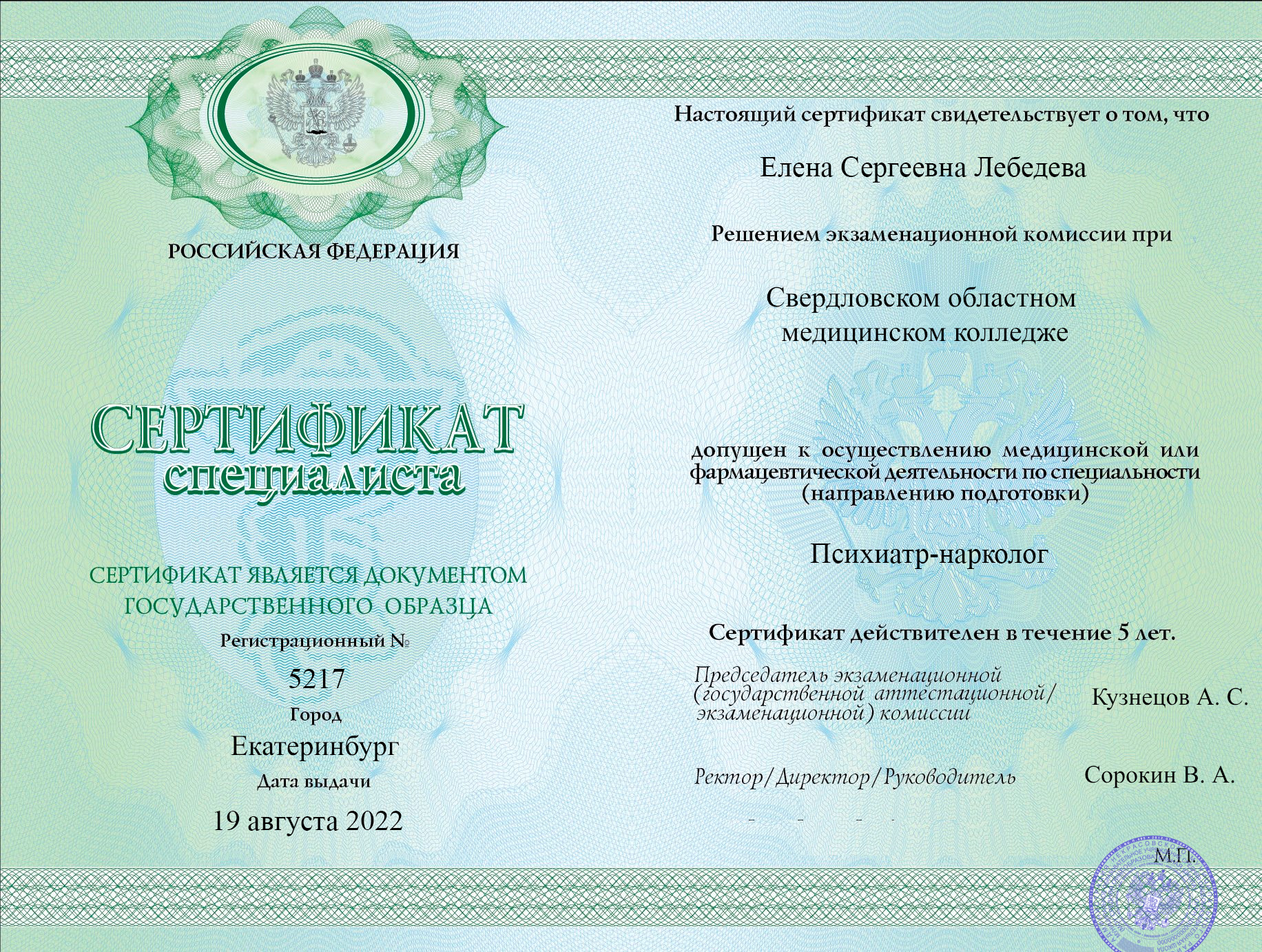 Елена Сергеевна Лебедева врач нарколог клиники доктора Стукаловой в Канске